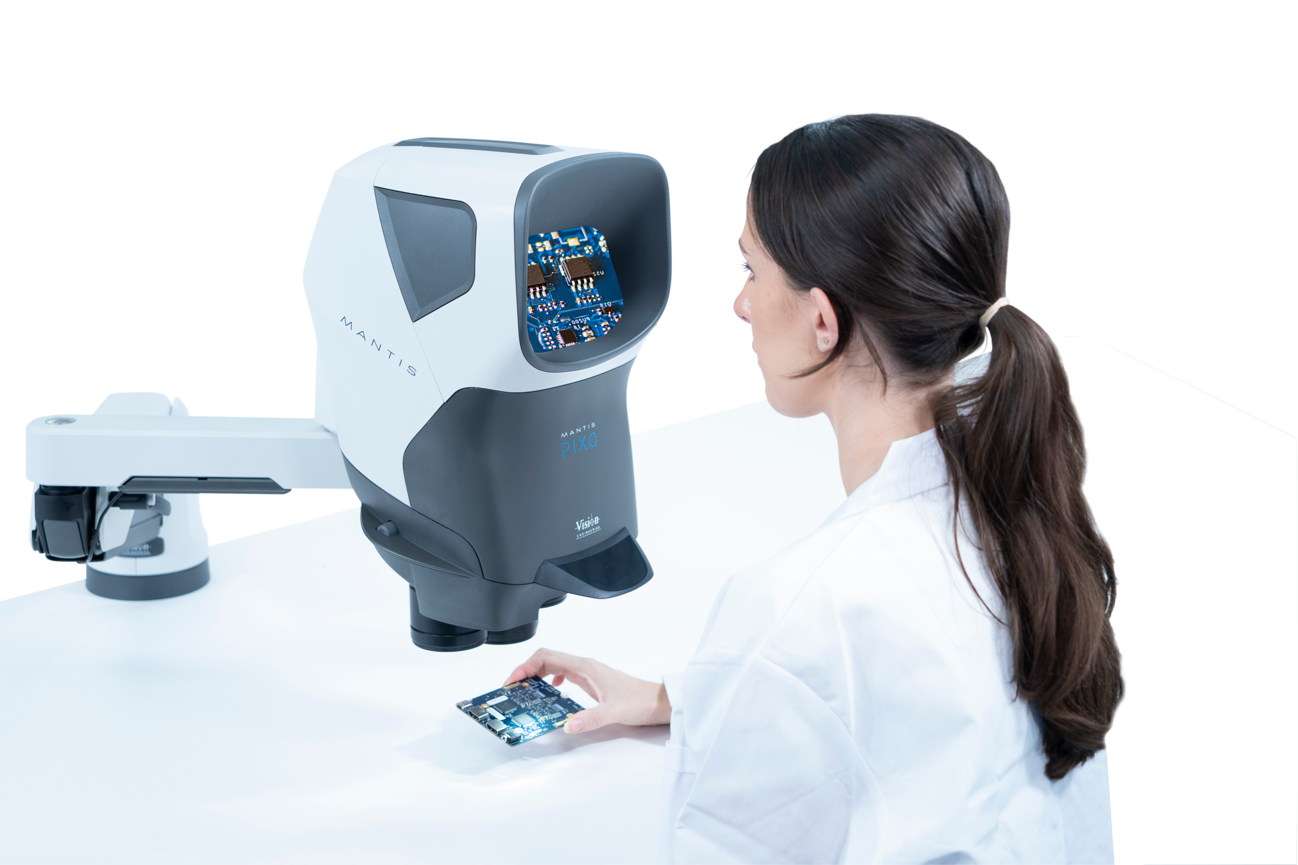 Mantis is an award-winning ergonomic stereo microscope that offers exceptional operator comfort and superb 3D imaging. No awkward eyepieces means a stress-free viewing experience, see more and do more than is possible with conventional binocular microscopes. Postural benefits combined with greater eye comfort, ease of use and the perfect stereo view means operators’ output quality and productivity are maximized.